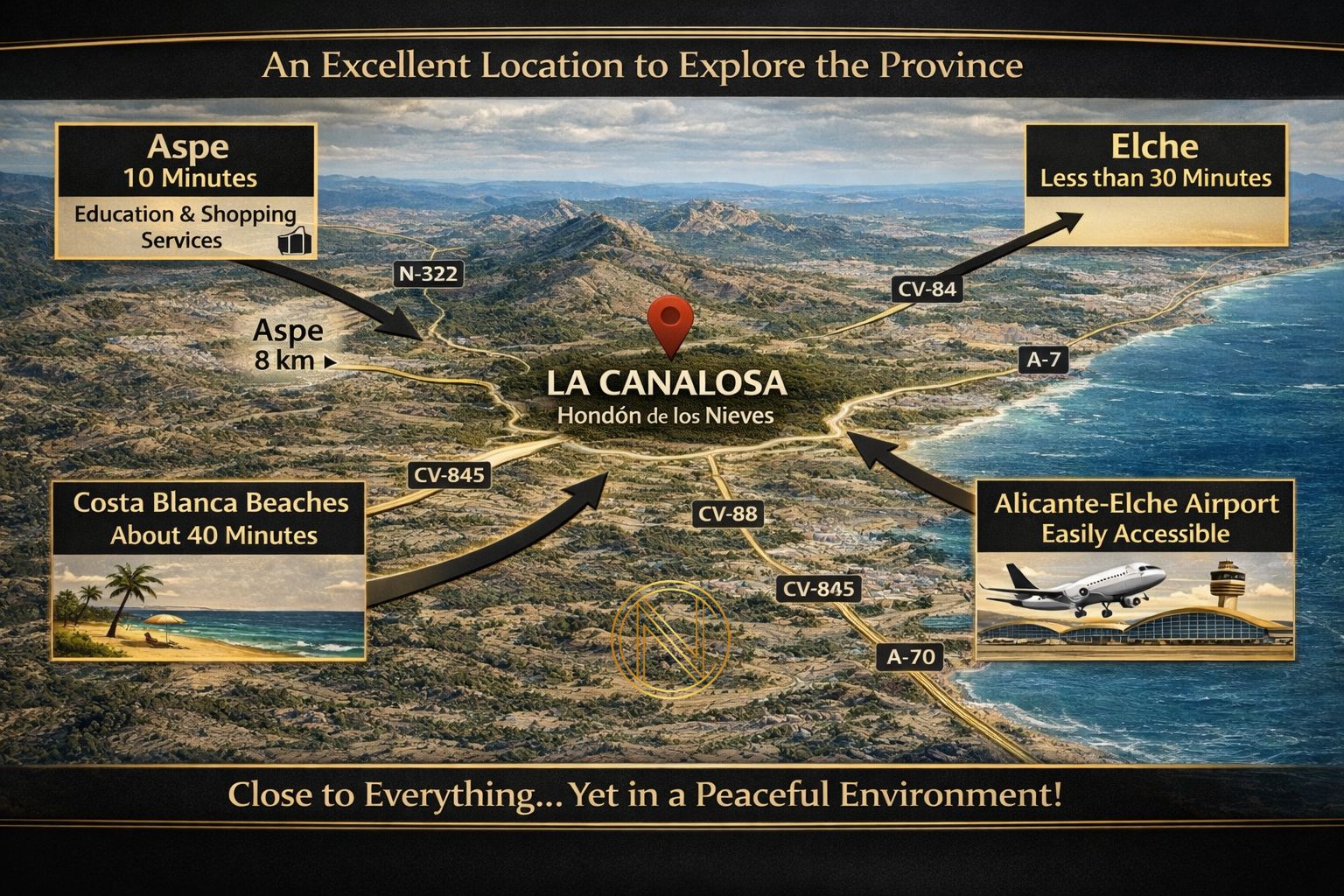 Living in La Canalosa allows you to enjoy peace and quiet while remaining close to key destinations: